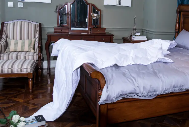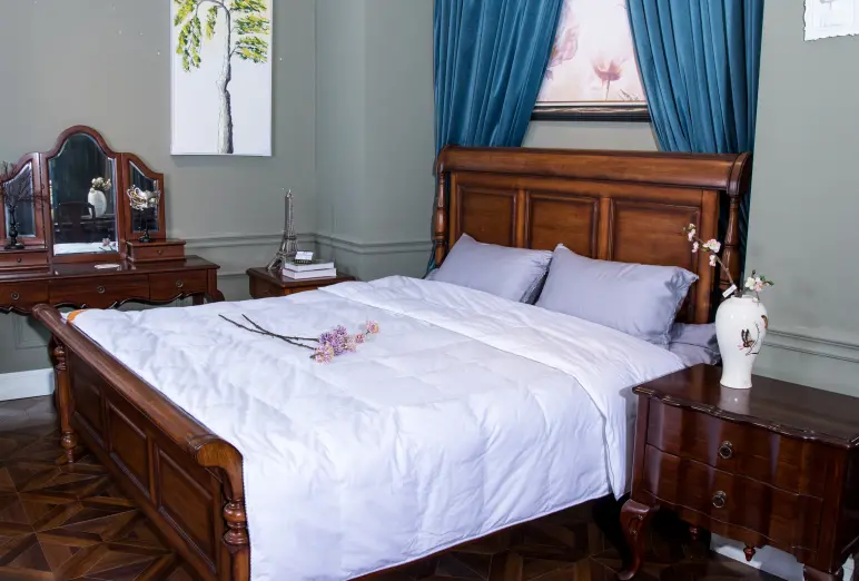Temperatuur- en vochtregulatie: Dicht geweven katoenen tijk voor comfortabele nachten.